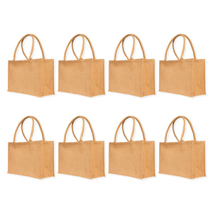 Natural Jute Tote Bags – Reusable & Stylish for DIY, Weddings, Groceries, Beach Trips & Promotions (Packs of 8)