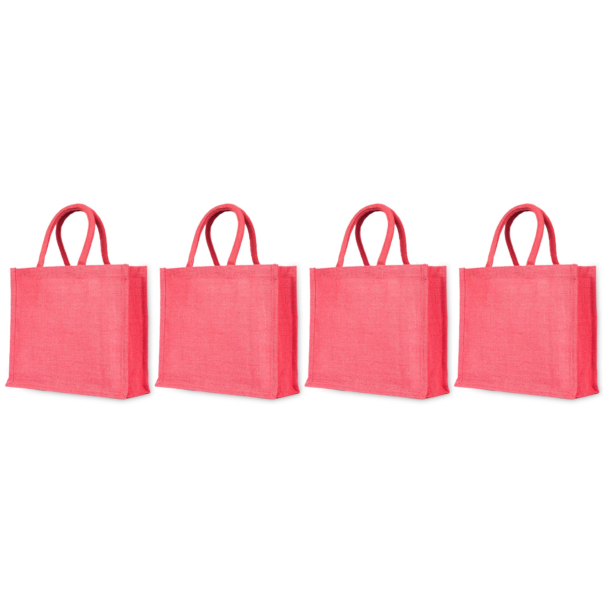 Jute Tote Bags – Burlap Shopping Bags in Red, Pink, Green & Orange – Perfect for Thanksgiving, Christmas, Weddings & Travel (Set of 4)