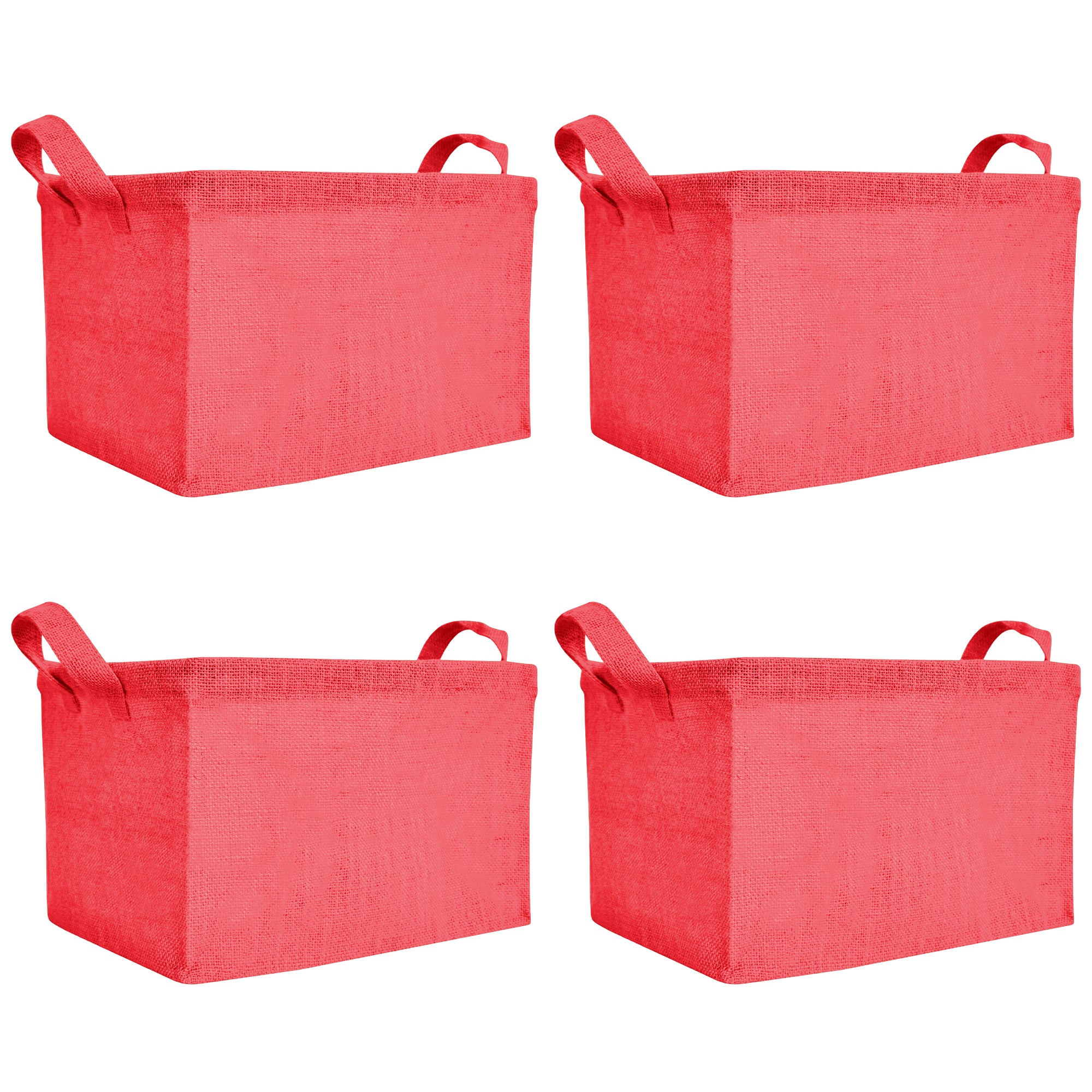 Coloured Collapsible Jute Baskets – Laundry Basket  Storage with Handles for Living Room, Bedroom – Small Clothes & Toys (Set of 4)