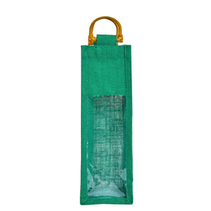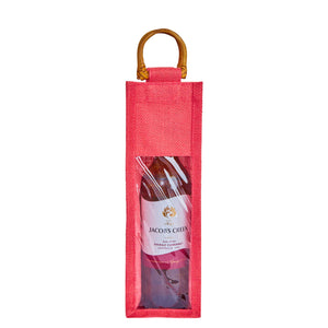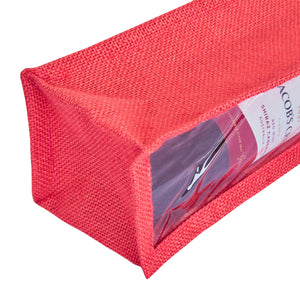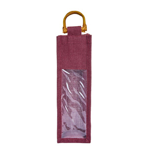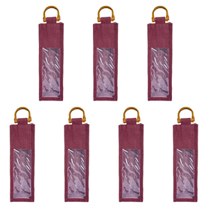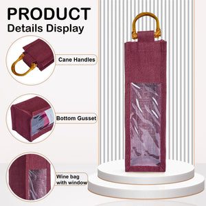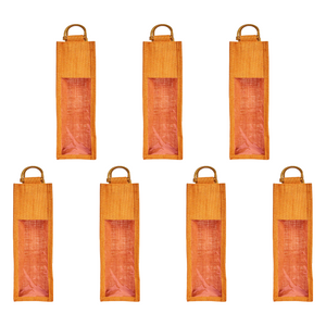 Coloured Jute Wine Gift Bags with PVC Window– Reusable Single Bottle Carriers for Weddings, Parties & Holiday Gifting (Packs of 7)