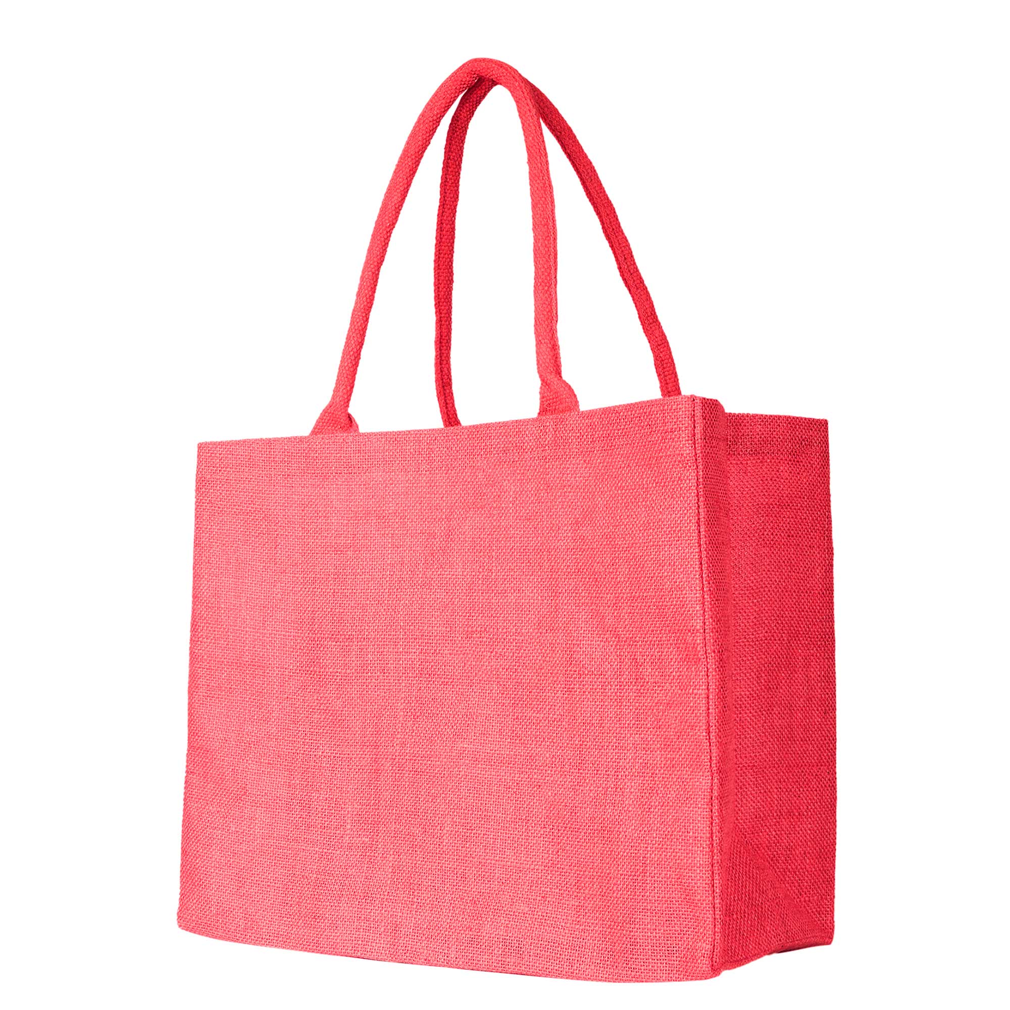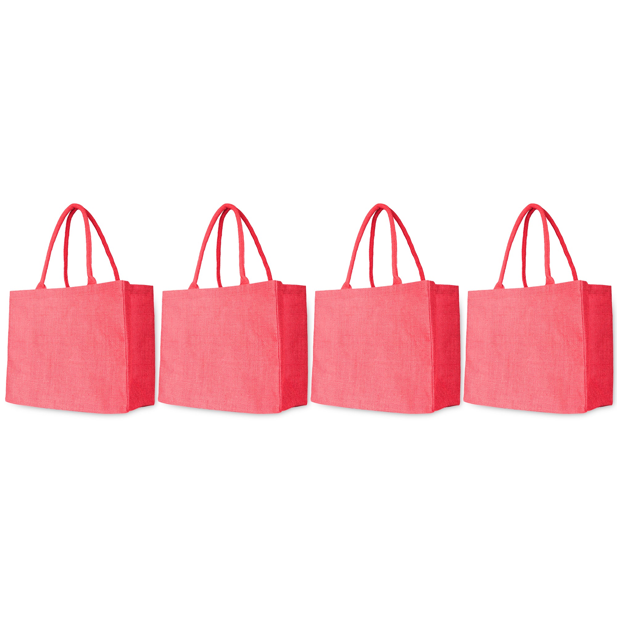 Jute Shopping Bags in Red, Pink, Green & Orange – Reusable Burlap Totes for Gifting, Weddings & More (Packs of 4)