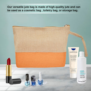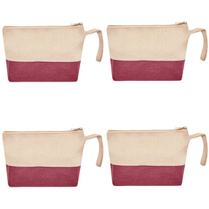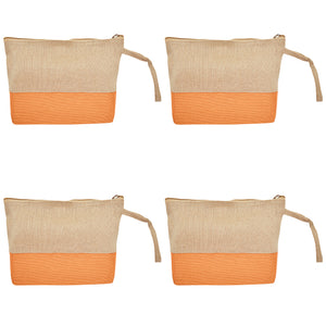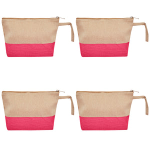 Jute Cosmetic Pouches – Travel-Friendly Zippered Burlap Bags for Makeup & Toiletries (Packs of 4)