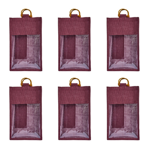 - Stylish & Sturdy Double-Bottle Wine Bags – Made from high-quality jute and featuring a transparent PVC front, these wine totes combine durability with elegance, ideal for housewarmings and special gifts.