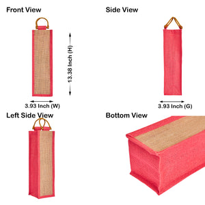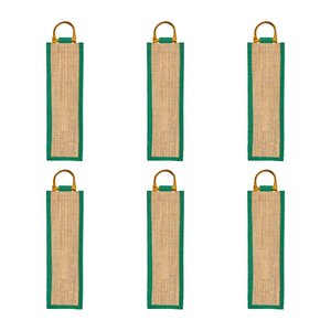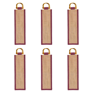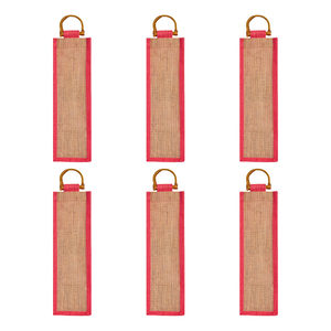 Jute Wine Gift Bags with Cane Handles –Coloured Single-Bottle Bag– New Year, Weddings, Birthdays, Parties, Christmas & Special Occasion (Packs of 6)