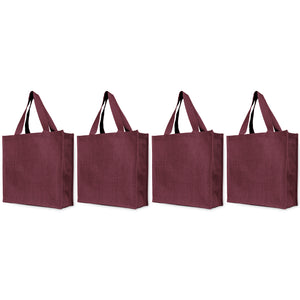 Reusable Jute Bags – Shopping, Gifting, Wedding, Daily Use – Deep Red, Pink, Green & Orange (Set of 4)