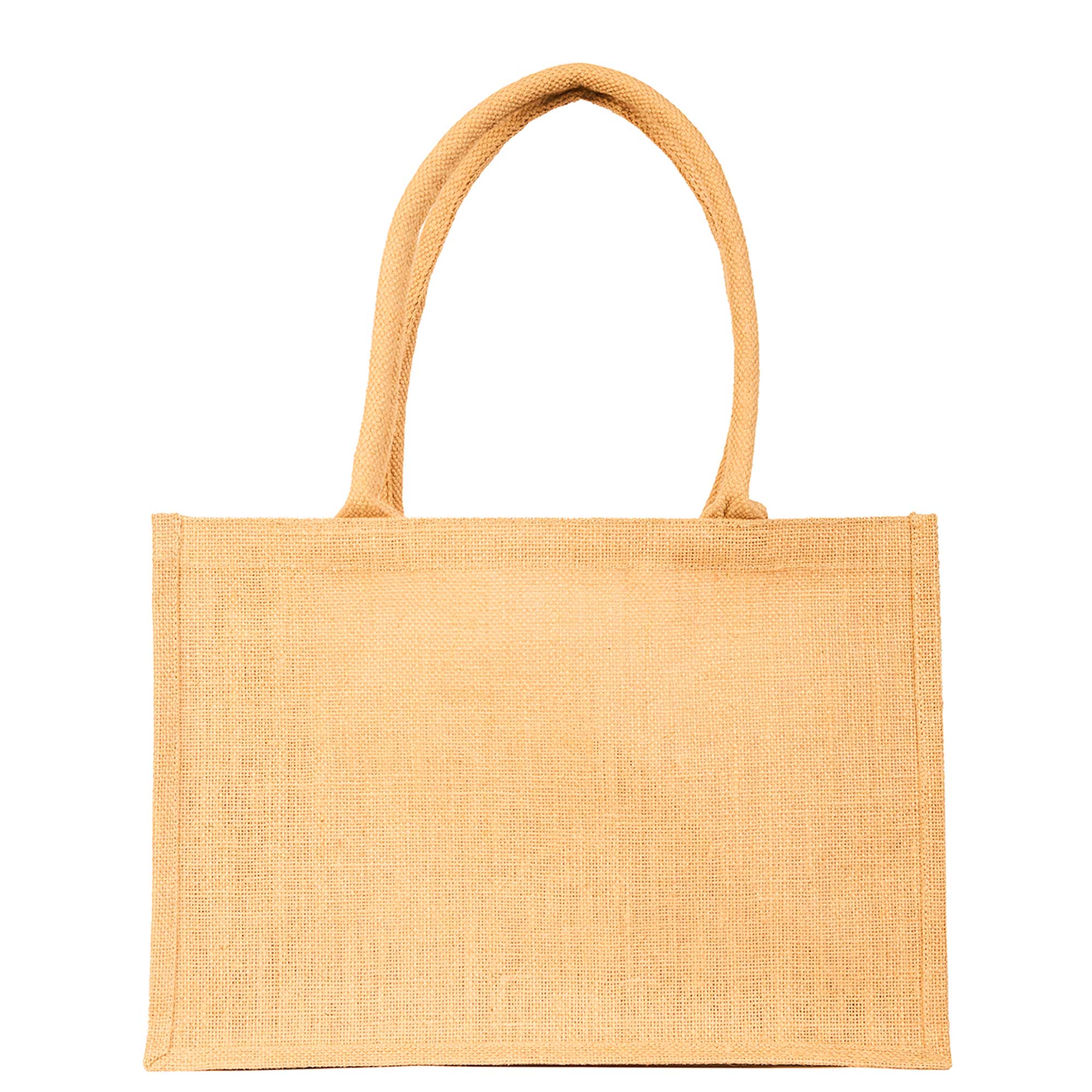 • Eco-Conscious Craftsmanship – Made from 100% natural jute with a laminated interior, this tote is a durable, water-resistant, and sustainable alternative to plastic bags.