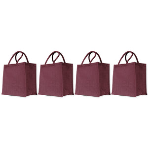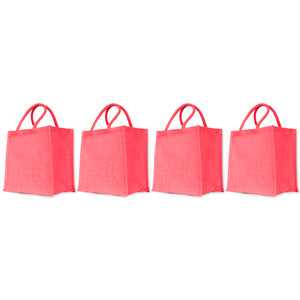 Jute Shopping Bags – Red, Pink, Green & Orange – Reusable Burlap Totes for Gifts, Promotions & More (Packs of 4)